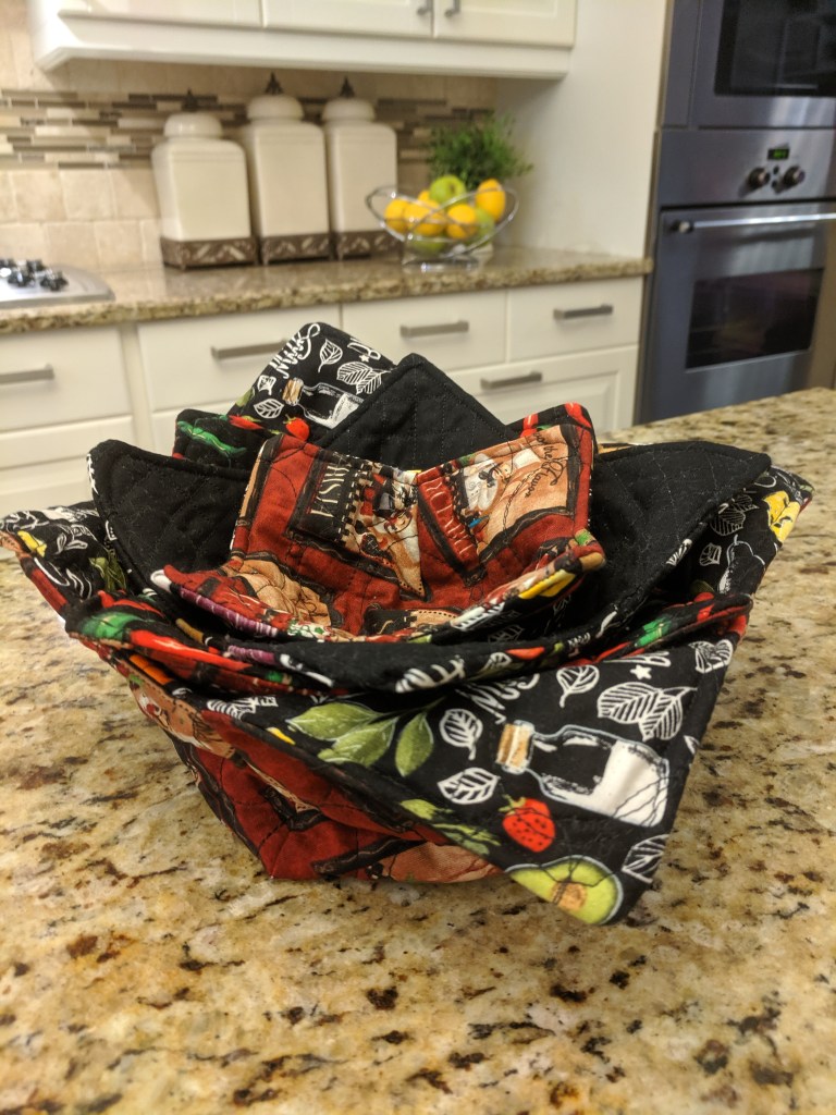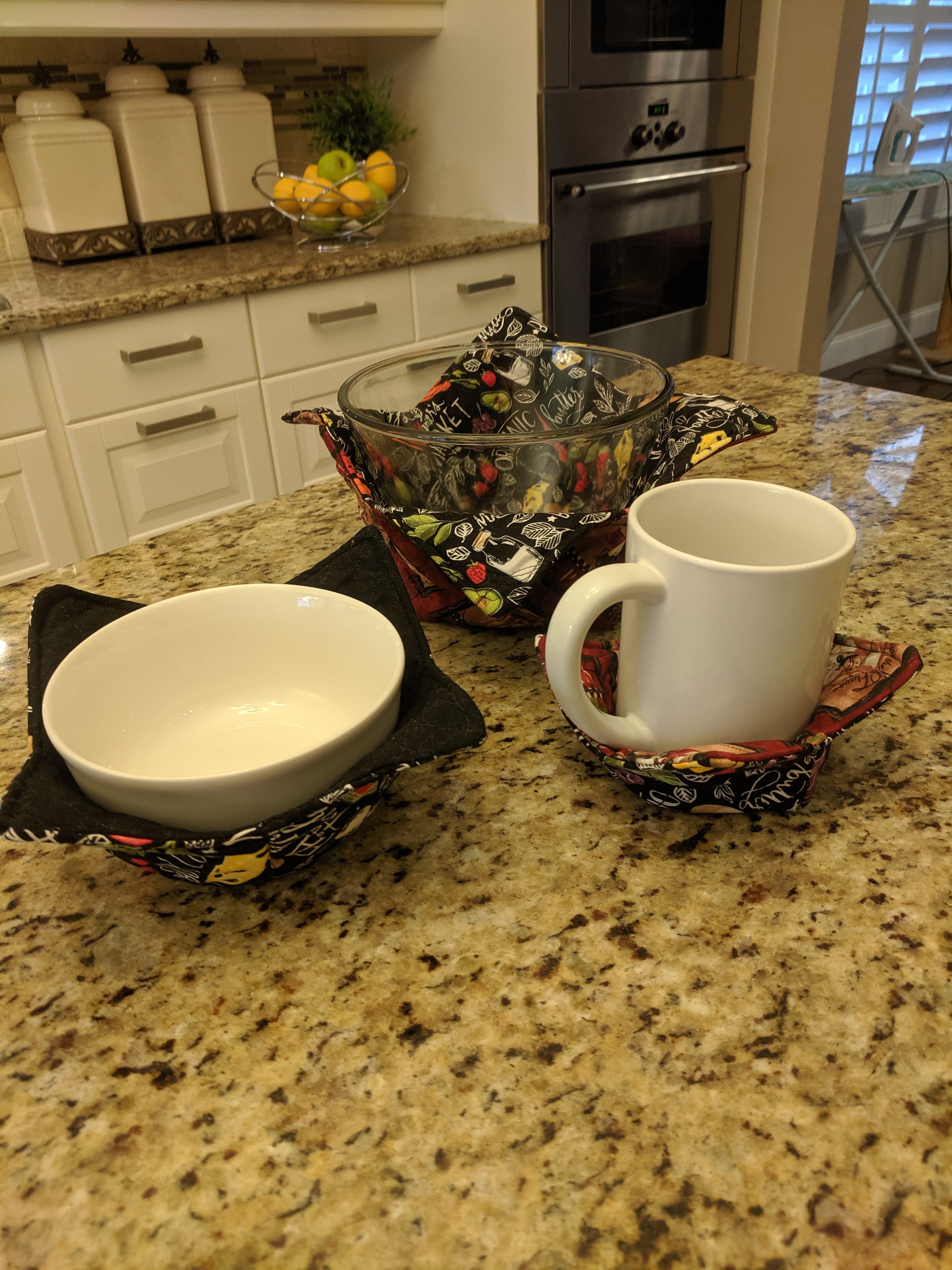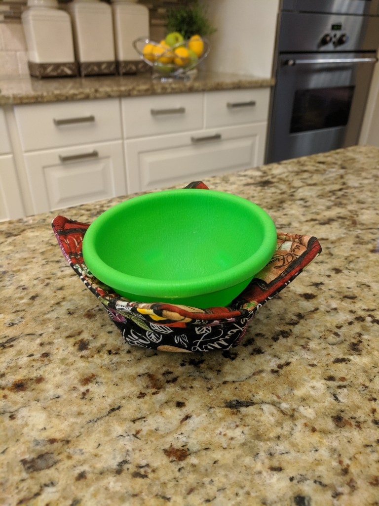 Microwave Bowl Cozy’s work better and can replace a pot holder. What do you do when you have a hot bowl in the microwave? Fumble with a towel, awkwardly position a pot holder…and risk spilling your soup… NO. There is a better way. Place your food bowl inside a microwave bowl cozy, heat and eat!