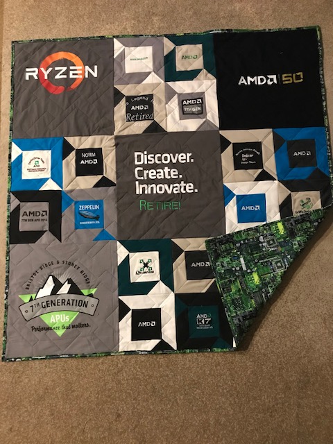 T-shirt quilts are very popular. One of the best gifts you can give your graduate is a t-shirt quilt to warm their new dorm room. Taking the piles of t-shirts from Band, Football or any other activity make great gifts. Many commercial company t-shirt quilts makers just tack your quilt at the corners and glue the blanket together. Having a Stitched & Quilted custom product will be entirely quilted in an Edge to Edge or Custom Design pattern with a commercial longarm quilting machine. Full quilting looks better, provides more stability, and makes your quilt last longer.